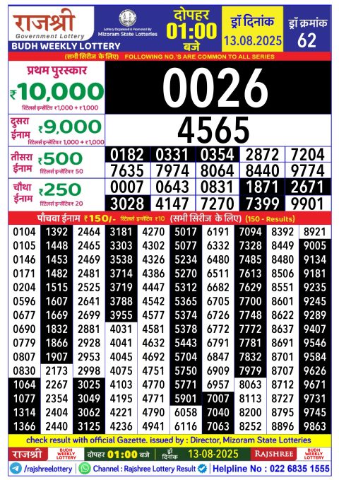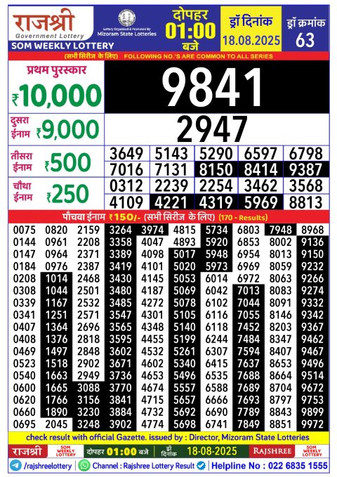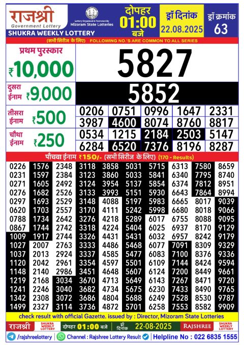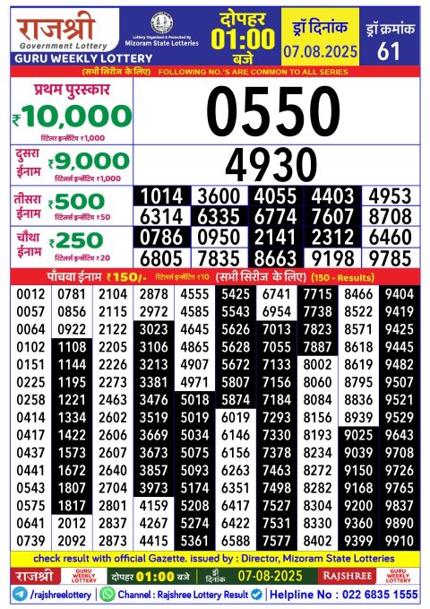 राजश्री लॉटरी रिजल्ट चार्ट – राजश्री रिजल्ट