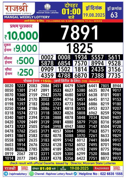 • Rajshree Diwali Special Lottery Result 30.10.25