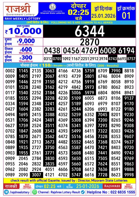 Rajshree Lottery Result 2.25PM 25.01.26