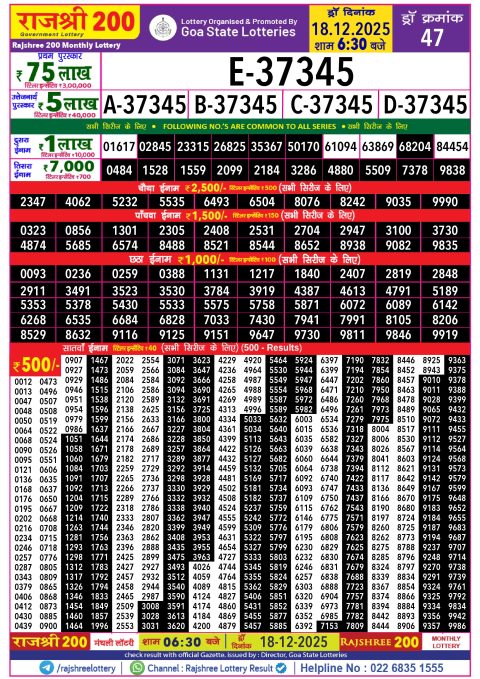 Rajshree 200 Monthly Lottery Result Today 18.12.25 The Rajshree 200 Monthly Lottery Result Today for the 47th…