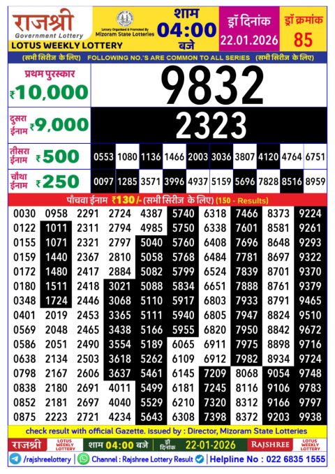 राजश्री लॉटरी रिजल्ट चार्ट – राजश्री रिजल्ट