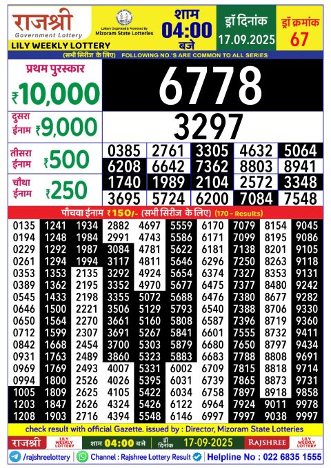 • Rajshree 50 Lottery Result 7.30PM 29.10.25