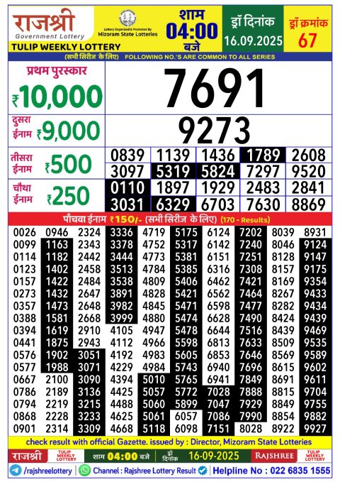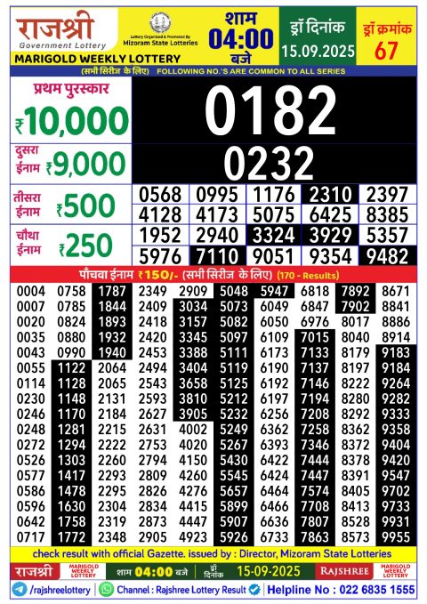 राजश्री लॉटरी रिजल्ट चार्ट – राजश्री रिजल्ट