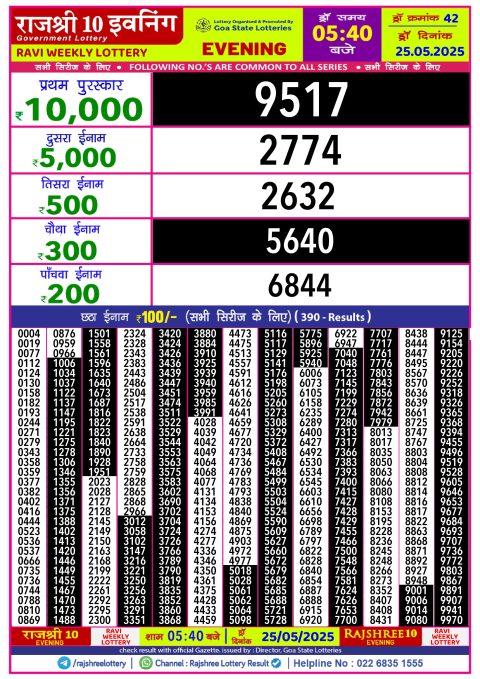 Rajshree 10 Lottery Result 5.40PM 05.12.25