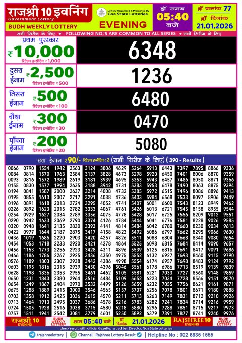 Rajshree 10 Lottery Result 5.40PM 21.01.26