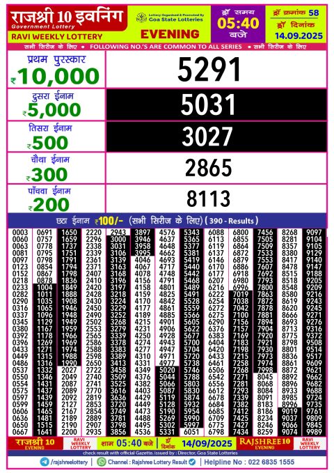 Rajshree 10 Lottery Result 5.40PM 14.09.25
