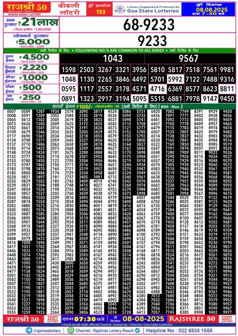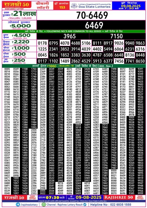 Rajshree 50 Lottery Result 7.30PM 10.08.25