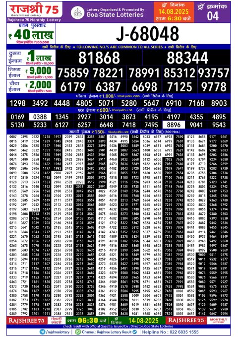 Rajshree 75 monthly lottery result 14.08.25 Today