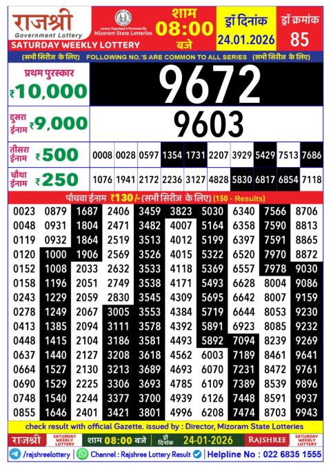 Rajshree Lottery Result 8PM 24.01.26