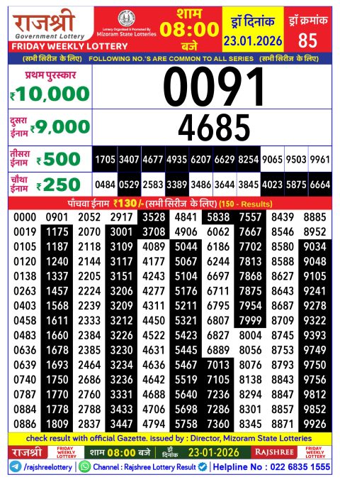 Rajshree Lottery Result 8PM 23.01.26