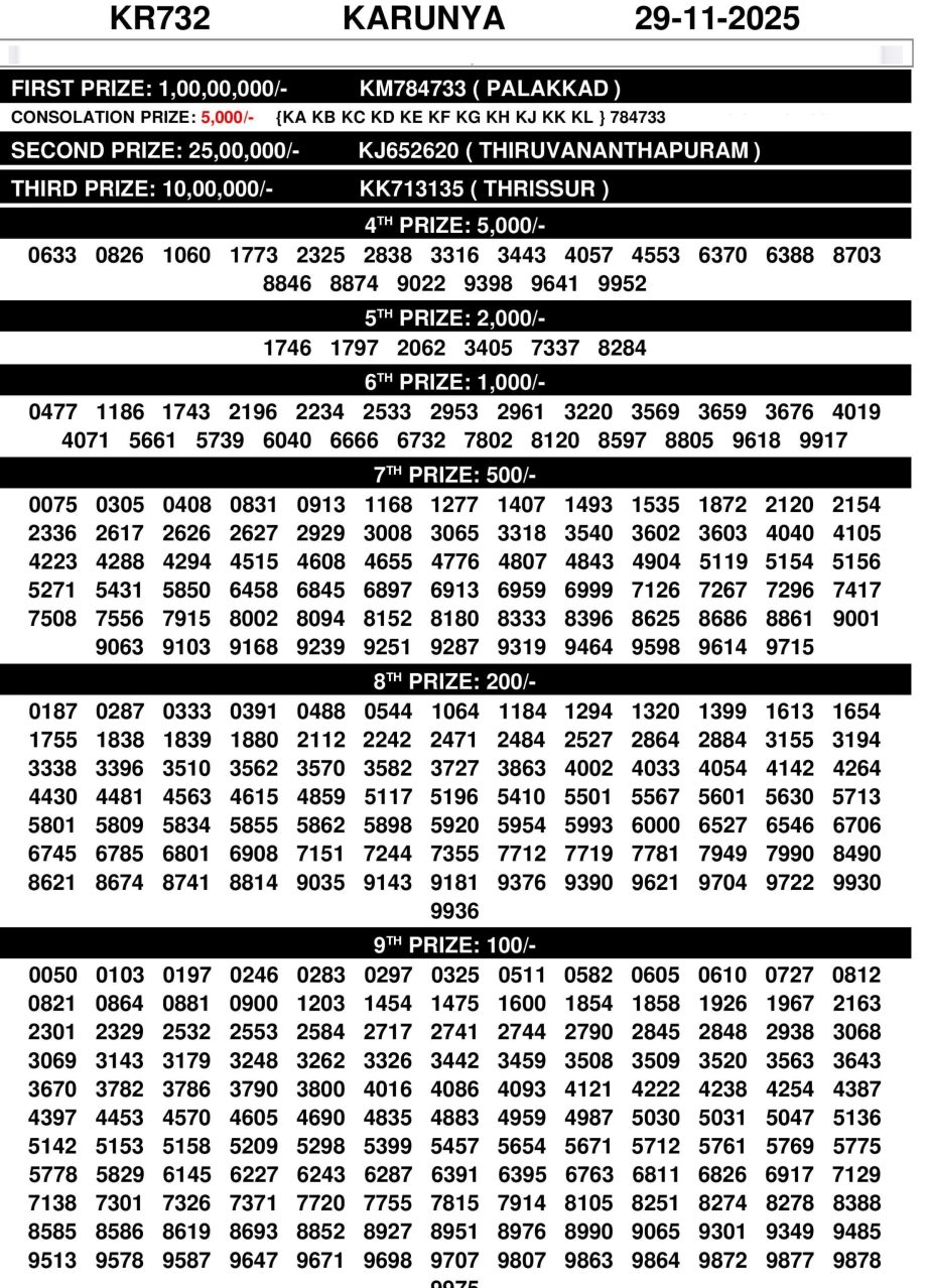 Karunya KR-734 Kerala Lottery Result 13.12.25