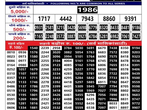 Maharashtra Sahyadri Monthly Lottery Result 13.01.26 Share: XFacebookPinterestRedditVKDiggLinkedinMix Related Results Rajshree 500 Monthly Lottery Result Today 13.01.26 Maharashtra Natal New Year Bumper Lottery Result Today 07.01.26 Rajshree Christmas Special Lottery Result 30.12.25 Maharashtra State Gajraj Monthly Lottery Result 27.12.25