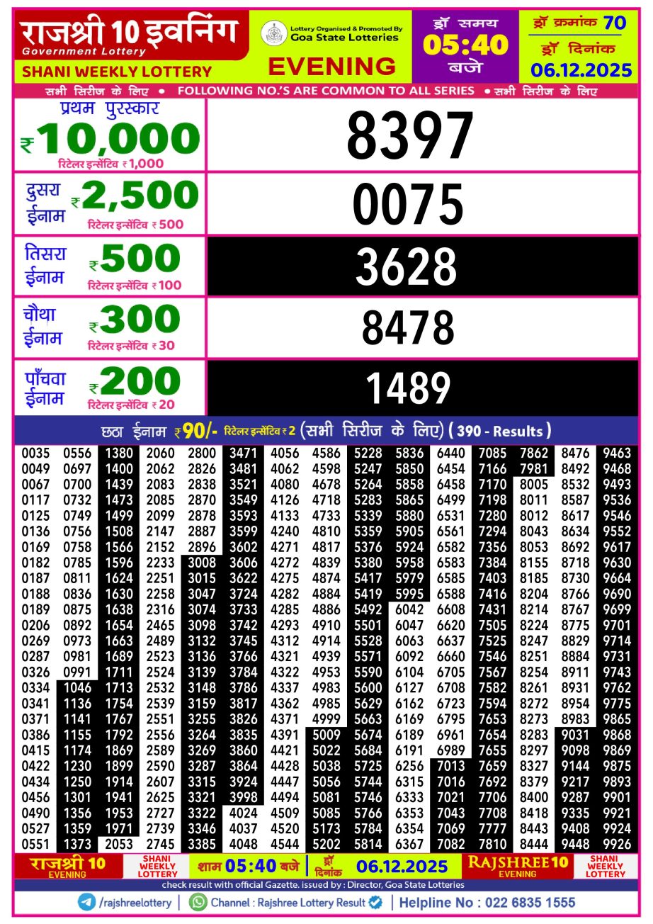 Rajshree 10 Lottery Result 5.40PM 06.12.25 Share: XFacebookPinterestRedditVKDiggLinkedinMix Related Results Rajshree 10 Lottery Result 5.40PM 14.12.25 Rajshree 10 Lottery Result 5.40PM 13.12.25 Rajshree 10 Lottery Result 5.40PM 12.12.25 Rajshree 10 Lottery Result 5.40PM 11.12.25