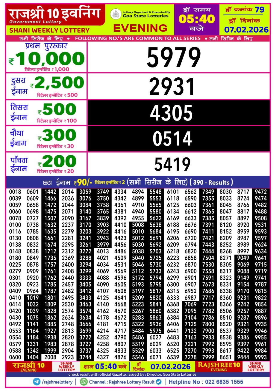 Rajshree 10 Lottery Result 5.40PM 07.02.26 Share: XFacebookPinterestRedditVKDiggLinkedinMix Related Results Rajshree 10 Lottery Result 5.40PM 09.02.26 Rajshree 10 Lottery Result 5.40PM 08.02.26 Rajshree 10 Lottery Result 5.40PM 06.02.26 Rajshree 10 Lottery Result 5.40PM 05.02.26