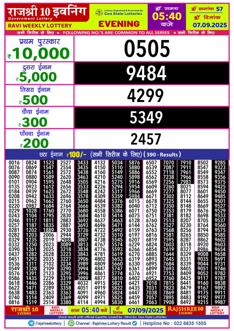 Rajshree 10 Lottery Result 5.40PM 07.09.25 Share: XFacebookPinterestRedditVKDiggLinkedinMix Related Results Rajshree 10 Lottery Result 5.40PM 30.10.25 Rajshree 10 Lottery Result 5.40PM 29.10.25 Rajshree 10 Lottery Result 5.40PM 28.10.25 Rajshree 10 Lottery Result 5.40PM 27.10.25