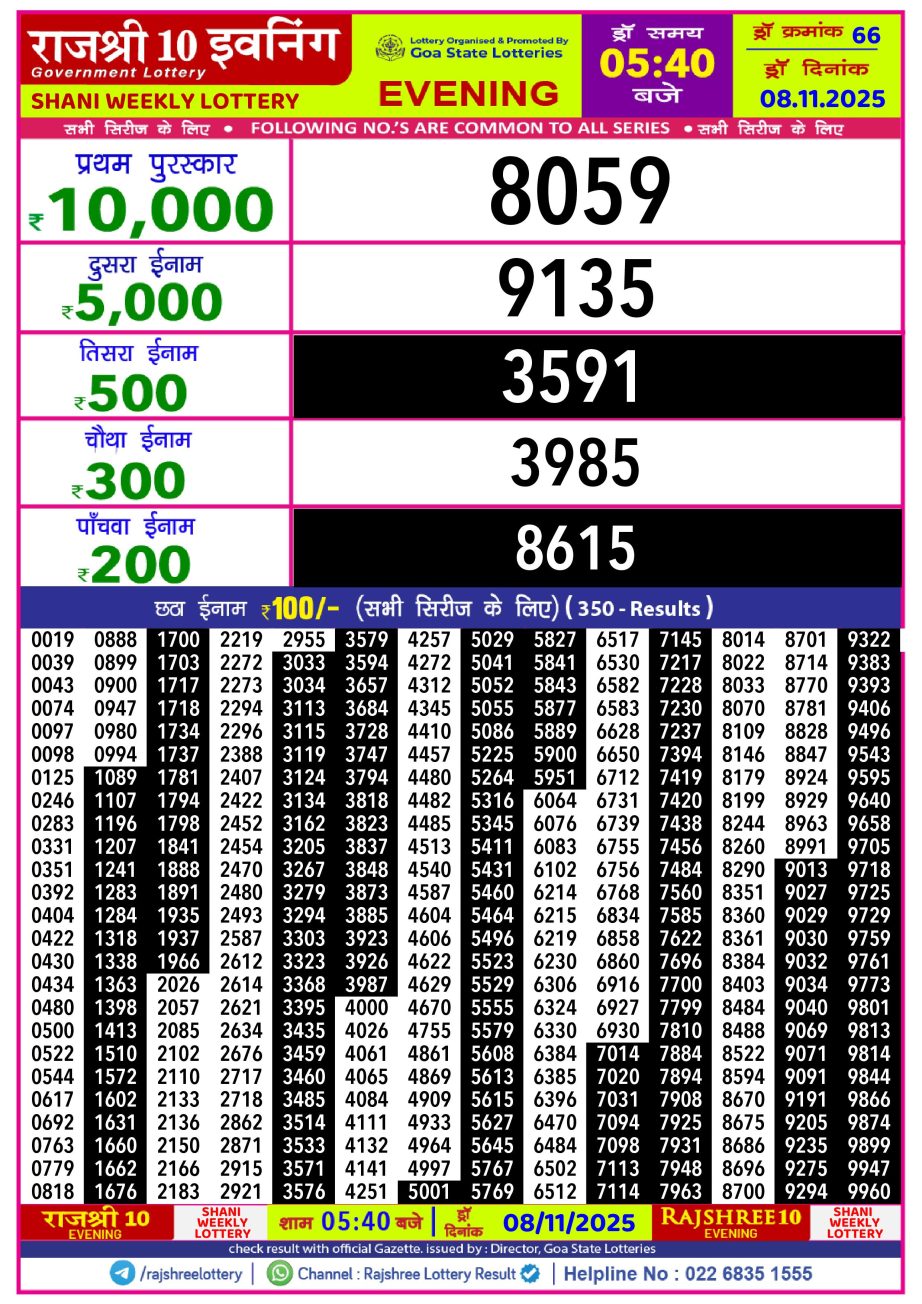 Rajshree 10 Lottery Result 5.40PM 08.11.25 Share: XFacebookPinterestRedditVKDiggLinkedinMix Related Results Rajshree 10 Lottery Result 5.40PM 11.11.25 Rajshree 10 Lottery Result 5.40PM 10.11.25 Rajshree 10 Lottery Result 5.40PM 09.11.25 Rajshree 10 Lottery Result 5.40PM 07.11.25