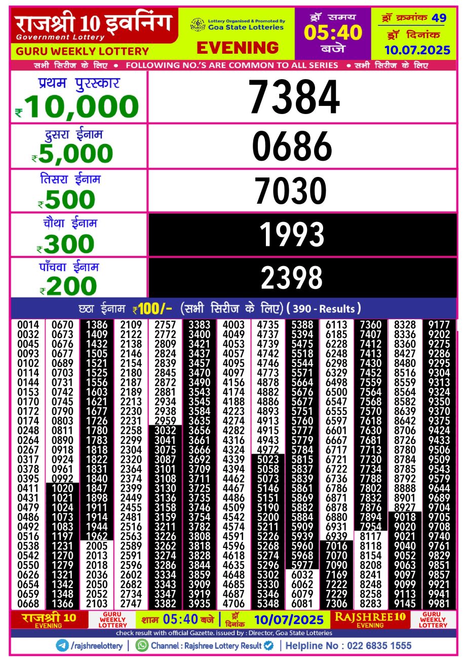 Rajshree 10 Lottery Result 5.40PM 10/07/25 Share: XFacebookPinterestRedditVKDiggLinkedinMix Related Results Rajshree 10 Lottery Result 5.40PM 29.10.25 Rajshree 10 Lottery Result 5.40PM 28.10.25 Rajshree 10 Lottery Result 5.40PM 27.10.25 Rajshree 10 Lottery Result 5.40PM 26.10.25