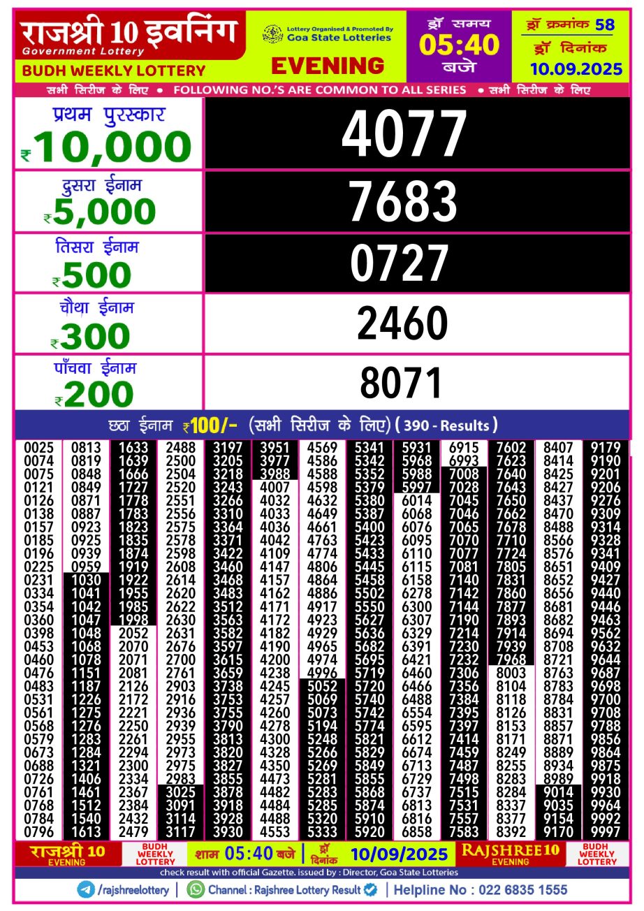 Rajshree 10 Lottery Result 5.40PM 10.09.25 Share: XFacebookPinterestRedditVKDiggLinkedinMix Related Results Rajshree 10 Lottery Result 5.40PM 30.10.25 Rajshree 10 Lottery Result 5.40PM 29.10.25 Rajshree 10 Lottery Result 5.40PM 28.10.25 Rajshree 10 Lottery Result 5.40PM 27.10.25