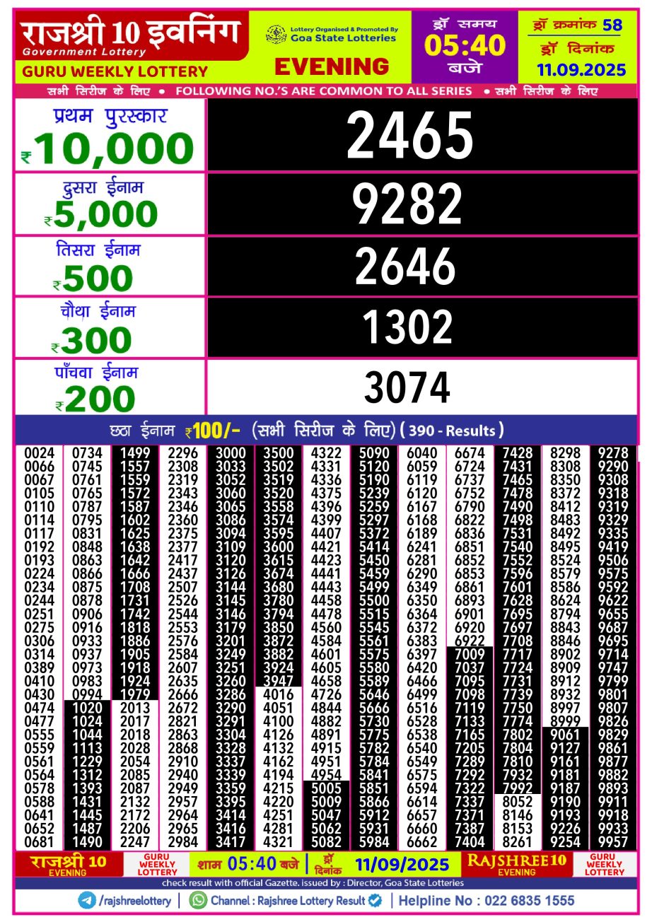 Rajshree 10 Lottery Result 5.40PM 11.09.25 Share: XFacebookPinterestRedditVKDiggLinkedinMix Related Results Rajshree 10 Lottery Result 5.40PM 29.10.25 Rajshree 10 Lottery Result 5.40PM 28.10.25 Rajshree 10 Lottery Result 5.40PM 27.10.25 Rajshree 10 Lottery Result 5.40PM 26.10.25