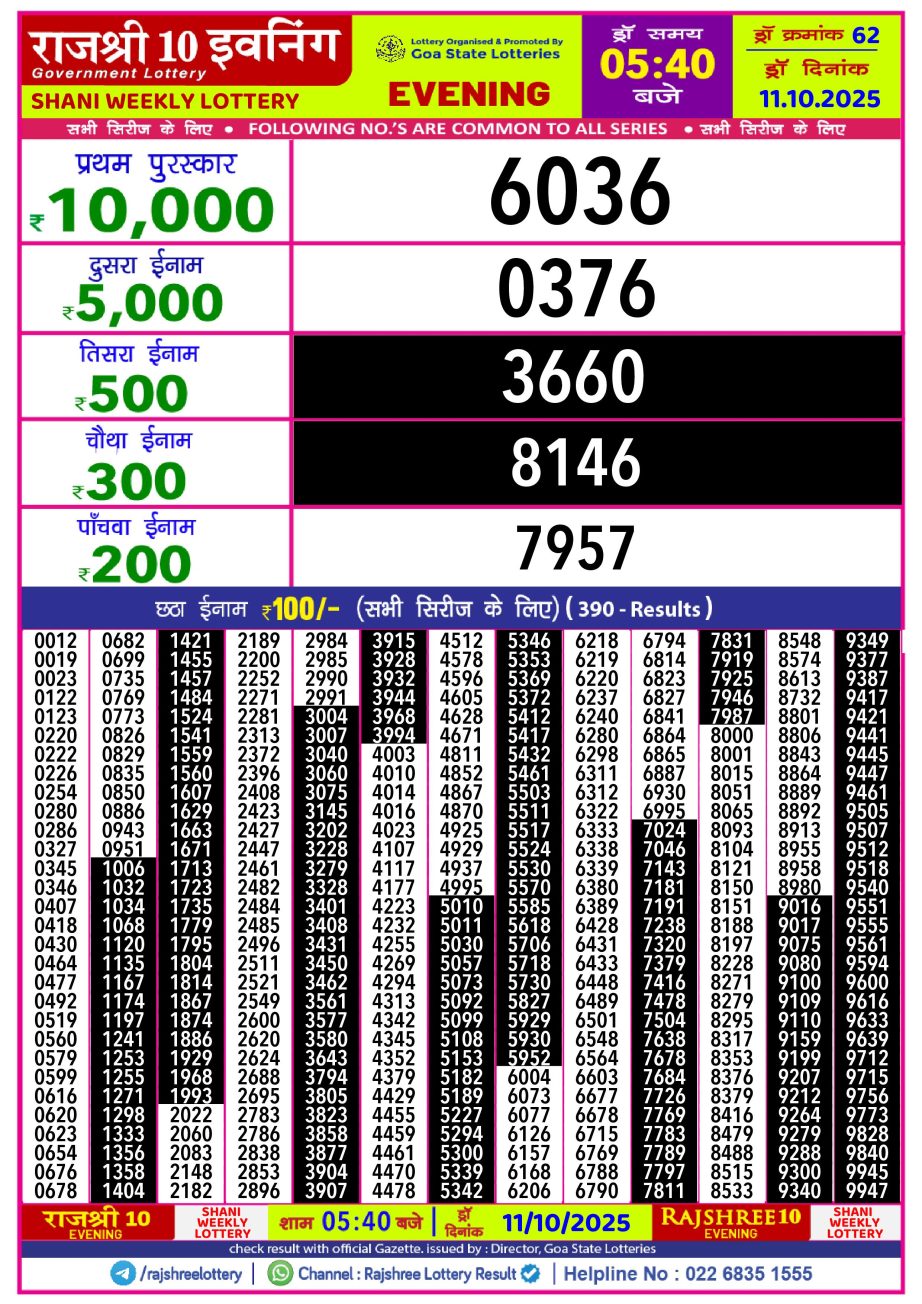 Rajshree 10 Lottery Result 5.40PM 11.10.25 Share: XFacebookPinterestRedditVKDiggLinkedinMix Related Results Rajshree 10 Lottery Result 5.40PM 13.10.25 Rajshree 10 Lottery Result 5.40PM 12.10.25 Rajshree 10 Lottery Result 5.40PM 10.10.25 Rajshree 10 Lottery Result 5.40PM 09.10.25