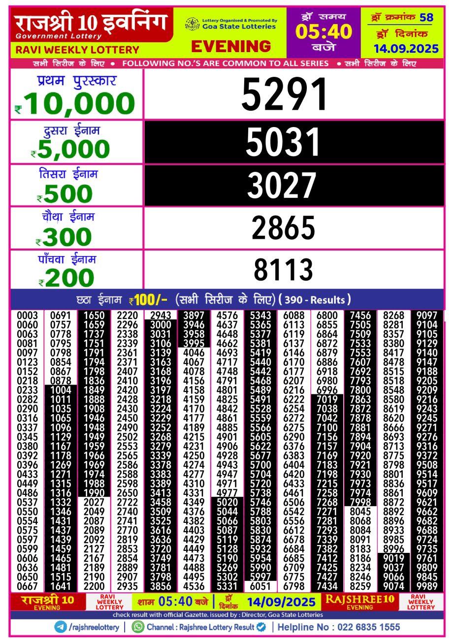 Rajshree 10 Lottery Result 5.40PM 14.09.25 Share: XFacebookPinterestRedditVKDiggLinkedinMix Related Results Rajshree 10 Lottery Result 5.40PM 29.10.25 Rajshree 10 Lottery Result 5.40PM 28.10.25 Rajshree 10 Lottery Result 5.40PM 27.10.25 Rajshree 10 Lottery Result 5.40PM 26.10.25
