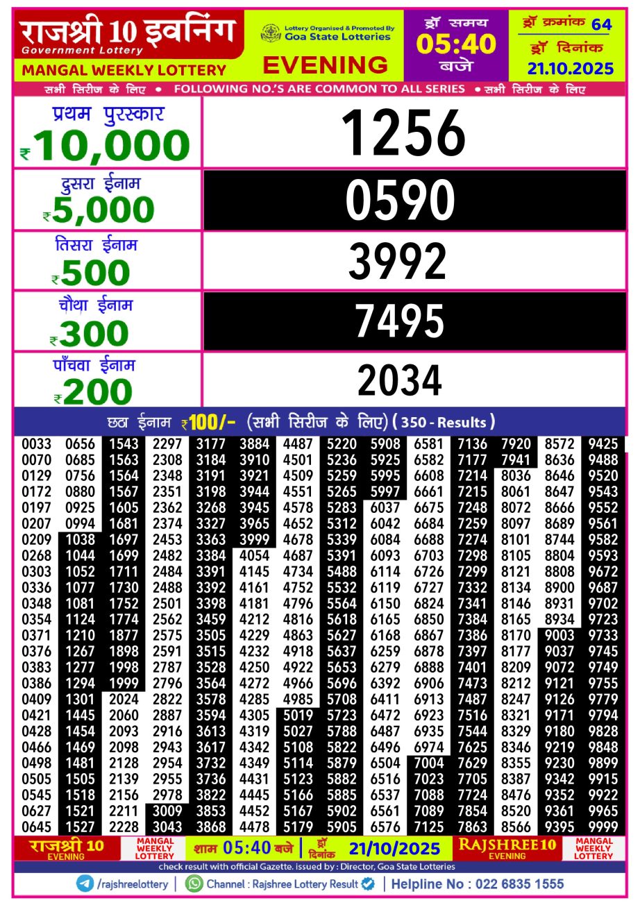 Rajshree 10 Lottery Result 5.40PM 21.10.25 Share: XFacebookPinterestRedditVKDiggLinkedinMix Related Results Rajshree 10 Lottery Result 5.40PM 14.12.25 Rajshree 10 Lottery Result 5.40PM 13.12.25 Rajshree 10 Lottery Result 5.40PM 12.12.25 Rajshree 10 Lottery Result 5.40PM 11.12.25