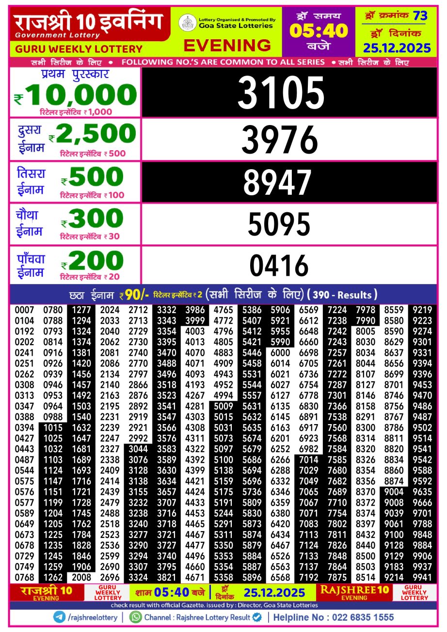 Rajshree 10 Lottery Result 5.40PM 25.12.25 Share: XFacebookPinterestRedditVKDiggLinkedinMix Related Results Rajshree 10 Lottery Result 5.40PM 16.01.26 Rajshree 10 Lottery Result 5.40PM 15.01.26 Rajshree 10 Lottery Result 5.40PM 14.01.26 Rajshree 10 Lottery Result 5.40PM 13.01.26