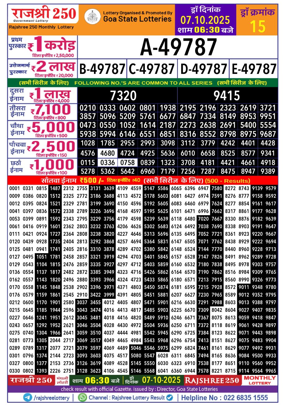 The moment of truth has arrived for thousands of hopeful ticket holders! The anticipation that has been building all month culminates today, October 7, 2025, with the announcement of the Rajshree 250 Monthly Lottery Result. Organized by the esteemed Goa State Lotteries, this draw has captured the imagination of many with its affordable ₹250 ticket price and a life-changing first prize of a staggering ₹1 Crore. If you have your ticket clutched tight, you are in the right place for the fastest and most accurate updates. We will be providing the winning numbers right here as soon as they are declared.