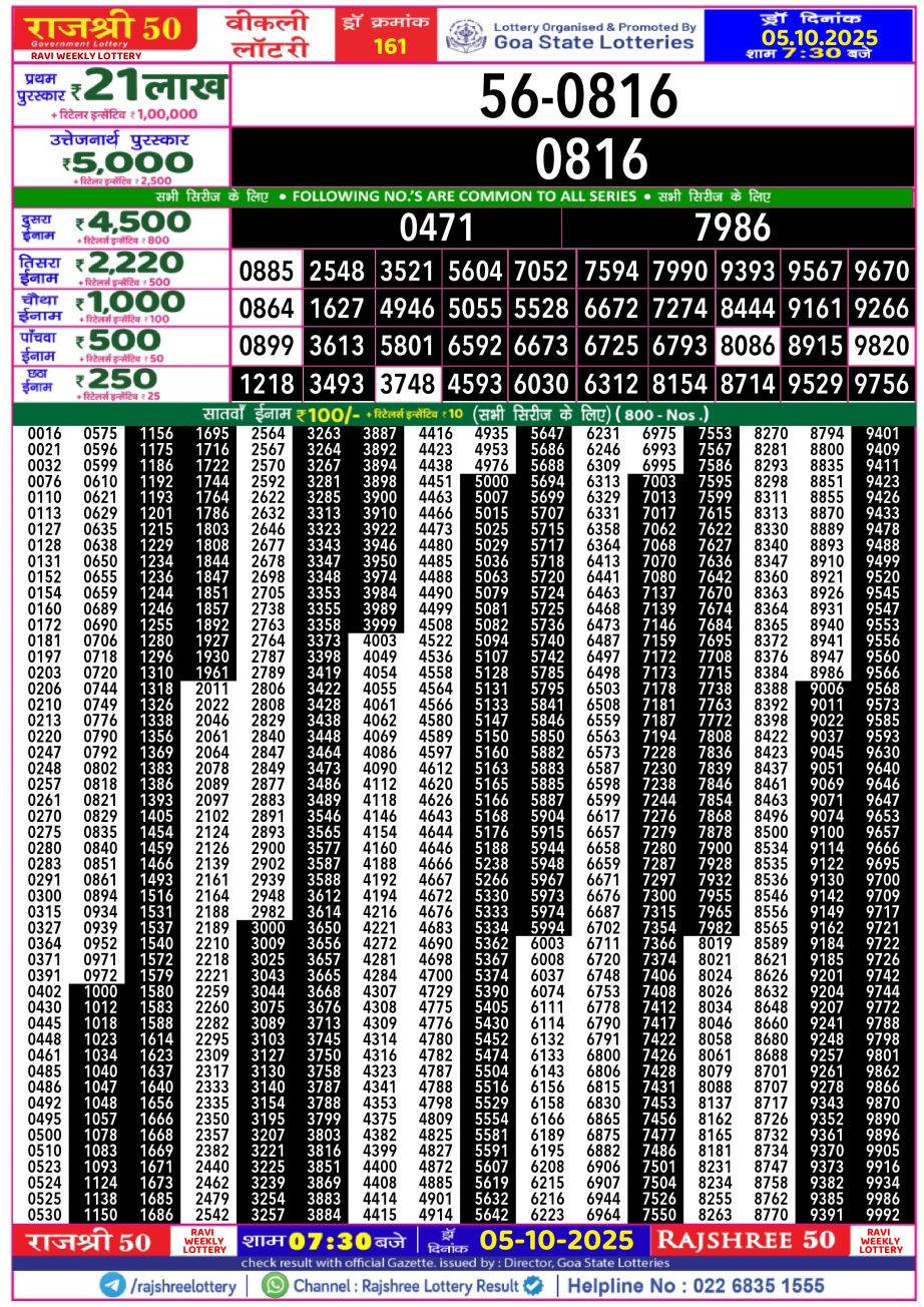 Rajshree 50 Lottery Result 7.30PM 05.10.25 Share: XFacebookPinterestRedditVKDiggLinkedinMix Related Results Rajshree 50 Lottery Result 7.30PM 13.10.25 Rajshree 50 Lottery Result 7.30PM 12.10.25 Rajshree 50 Lottery Result 7.30PM 11.10.25 Rajshree 50 Lottery Result 7.30PM 10.10.25