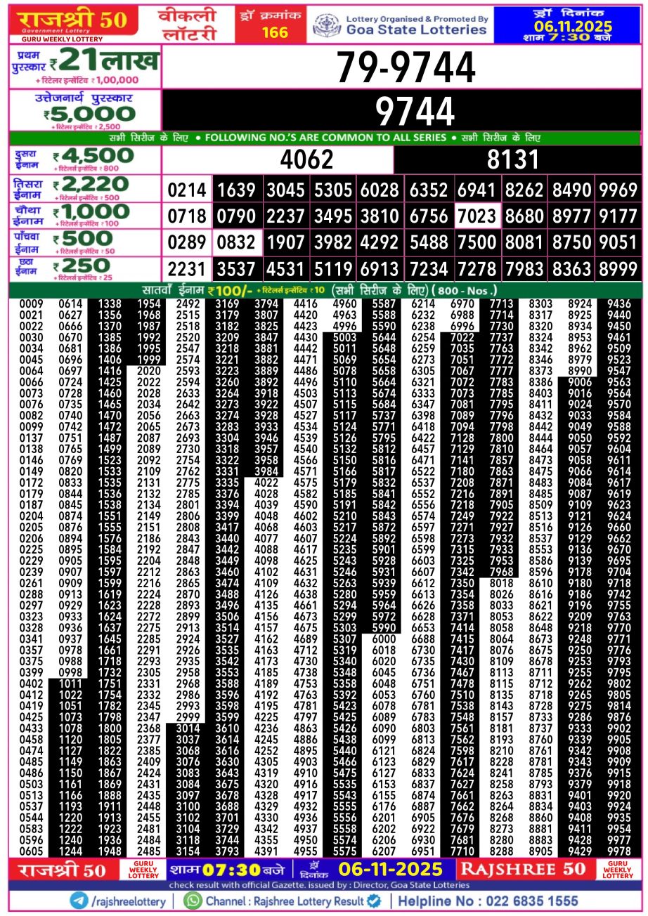 Rajshree 50 Lottery Result 7.30PM 06.11.25 Share: XFacebookPinterestRedditVKDiggLinkedinMix Related Results Rajshree 50 Lottery Result 7.30PM 11.11.25 Rajshree 50 Lottery Result 7.30PM 10.11.25 Rajshree 50 Lottery Result 7.30PM 09.11.25 Rajshree 50 Lottery Result 7.30PM 08.11.25