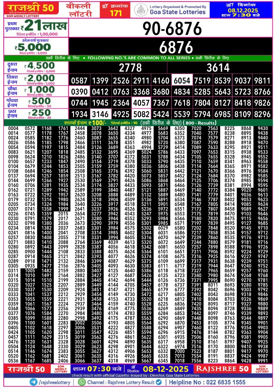 Rajshree 50 Lottery Result 7.30PM 08.12.25 Share: XFacebookPinterestRedditVKDiggLinkedinMix Related Results Rajshree 50 Lottery Result 7.30PM 14.12.25 Rajshree 50 Lottery Result 7.30PM 13.12.25 Rajshree 50 Lottery Result 7.30PM 12.12.25 Rajshree 50 Lottery Result 7.30PM 11.12.25