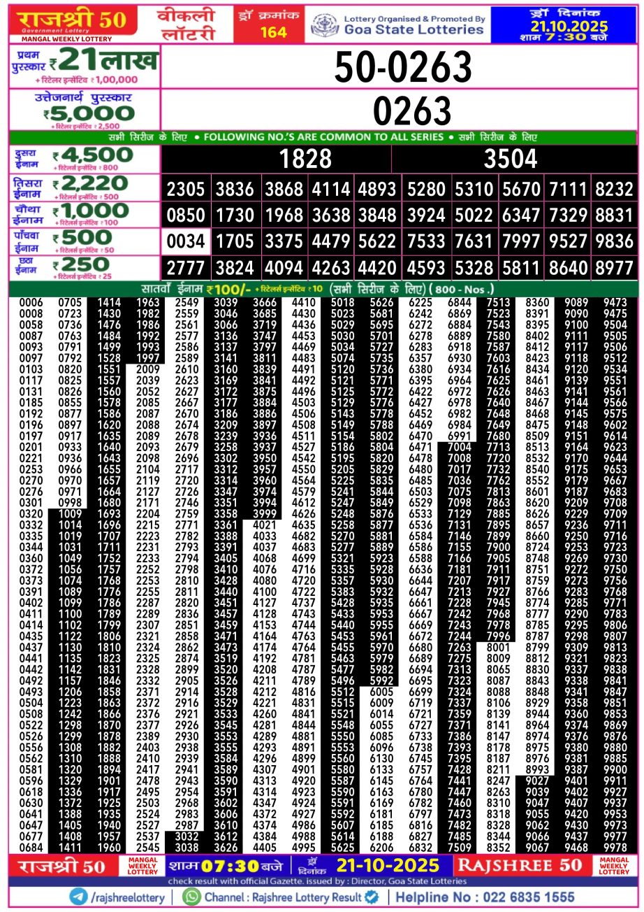 Rajshree 50 Lottery Result 7.30PM 21.10.25 Share: XFacebookPinterestRedditVKDiggLinkedinMix Related Results Rajshree 50 Lottery Result 7.30PM 14.12.25 Rajshree 50 Lottery Result 7.30PM 13.12.25 Rajshree 50 Lottery Result 7.30PM 12.12.25 Rajshree 50 Lottery Result 7.30PM 11.12.25