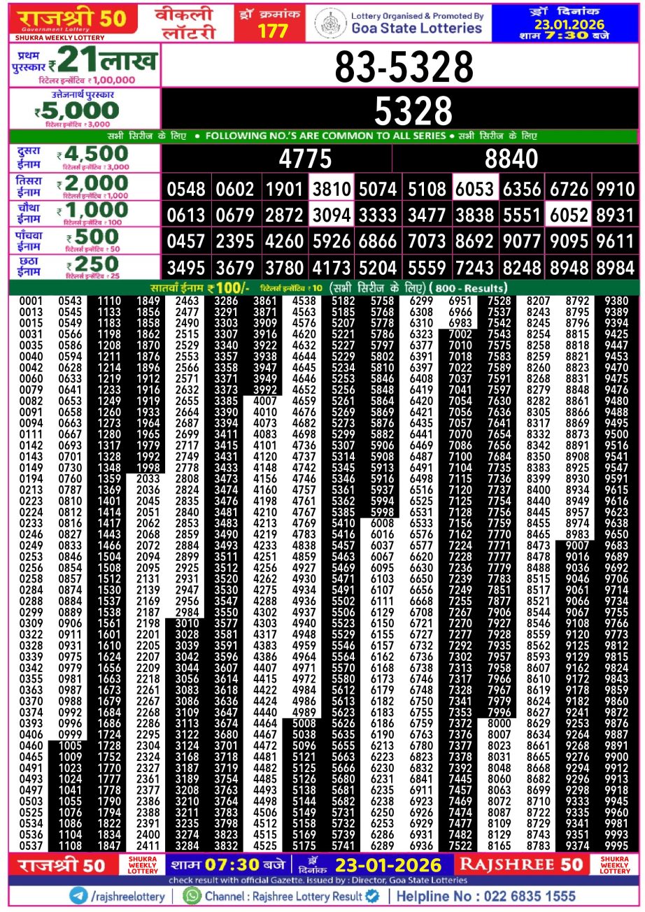 Rajshree 50 Lottery Result 7.30PM 23.01.26 Share: XFacebookPinterestRedditVKDiggLinkedinMix Related Results Rajshree 50 Lottery Result 7.30PM 10.02.26 Rajshree 50 Lottery Result 7.30PM 09.02.26 Rajshree 50 Lottery Result 7.30PM 08.02.26 Rajshree 50 Lottery Result 7.30PM 07.02.26