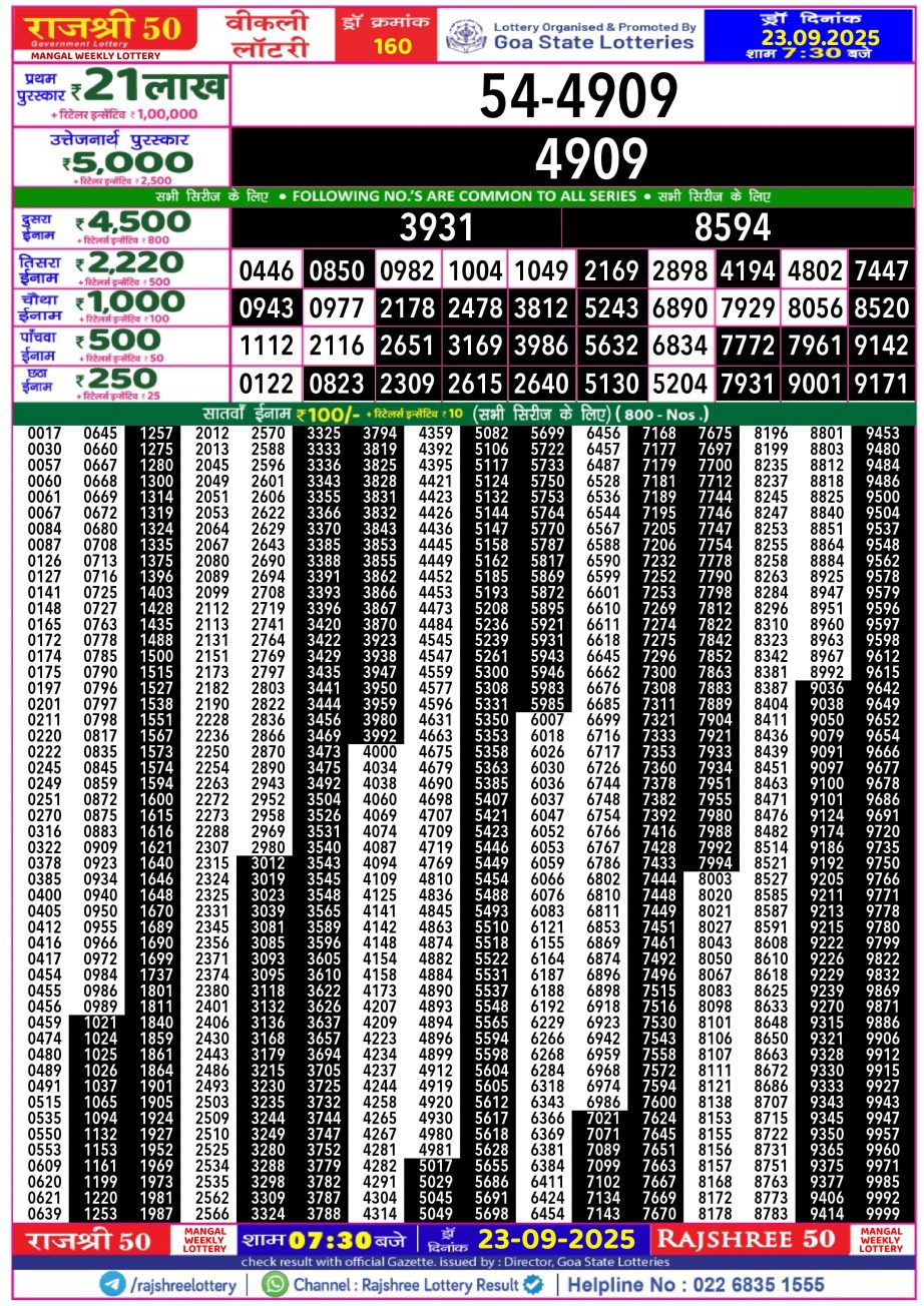 Rajshree 50 Lottery Result 7.30PM 23.09.25 Share: XFacebookPinterestRedditVKDiggLinkedinMix Related Results Rajshree 50 Lottery Result 7.30PM 12.11.25 Rajshree 50 Lottery Result 7.30PM 11.11.25 Rajshree 50 Lottery Result 7.30PM 10.11.25 Rajshree 50 Lottery Result 7.30PM 09.11.25