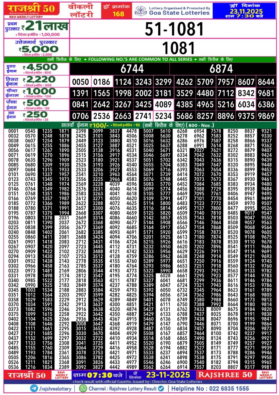 Rajshree 50 Lottery Result 7.30PM 23.11.25 Share: XFacebookPinterestRedditVKDiggLinkedinMix Related Results Rajshree 50 Lottery Result 7.30PM 14.12.25 Rajshree 50 Lottery Result 7.30PM 13.12.25 Rajshree 50 Lottery Result 7.30PM 12.12.25 Rajshree 50 Lottery Result 7.30PM 11.12.25