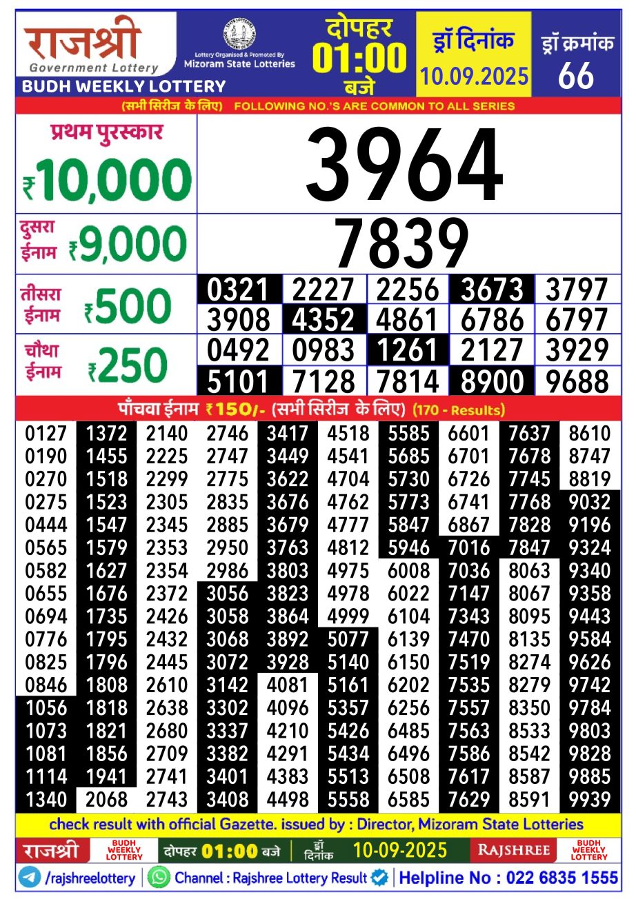 Rajshree Lottery Result 1PM 10.09.25 Share: XFacebookPinterestRedditVKDiggLinkedinMix Related Results Rajshree Lottery Result 1PM 29.10.25 Rajshree Lottery Result 1PM 28.10.25 Rajshree Lottery Result 1PM 27.10.25 Rajshree Lottery Result 1PM 26.10.25