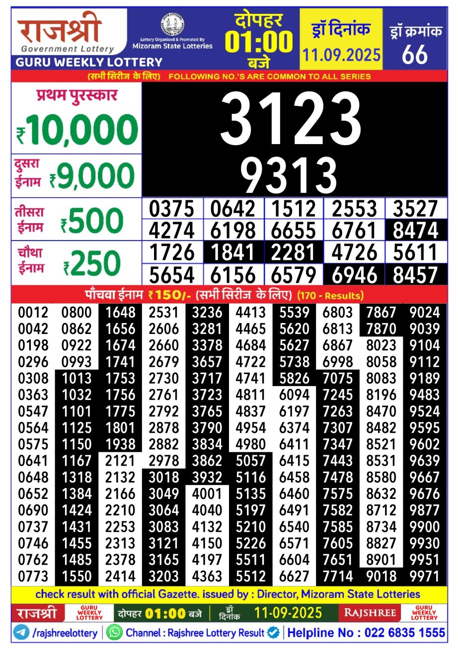 Rajshree Lottery Result 1PM 11.09.25 Share: XFacebookPinterestRedditVKDiggLinkedinMix Related Results Rajshree Lottery Result 1PM 29.10.25 Rajshree Lottery Result 1PM 28.10.25 Rajshree Lottery Result 1PM 27.10.25 Rajshree Lottery Result 1PM 26.10.25