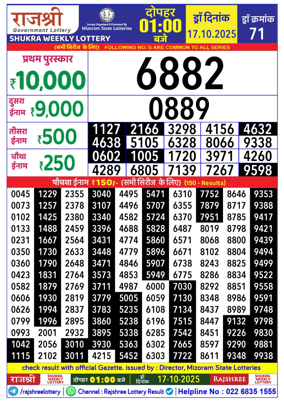 Rajshree Lottery Result 1PM 17.10.25 Share: XFacebookPinterestRedditVKDiggLinkedinMix Related Results Rajshree Lottery Result 1PM 14.12.25 Rajshree Lottery Result 1PM 13.12.25 Rajshree Lottery Result 1PM 12.12.25 Rajshree Lottery Result 1PM 11.12.25