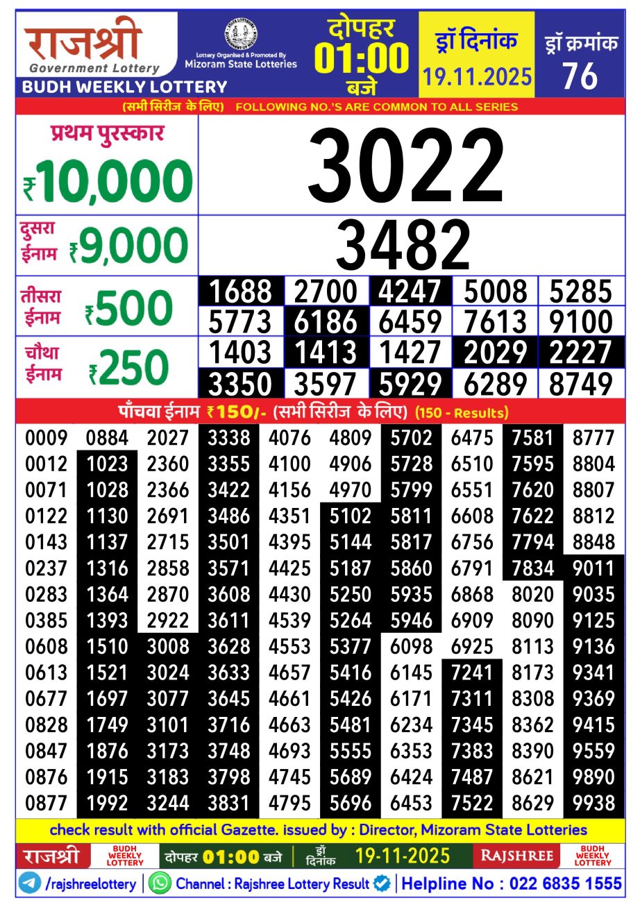 Rajshree Lottery Result 1PM 19.11.25 Share: XFacebookPinterestRedditVKDiggLinkedinMix Related Results Rajshree Lottery Result 1PM 14.12.25 Rajshree Lottery Result 1PM 13.12.25 Rajshree Lottery Result 1PM 12.12.25 Rajshree Lottery Result 1PM 11.12.25