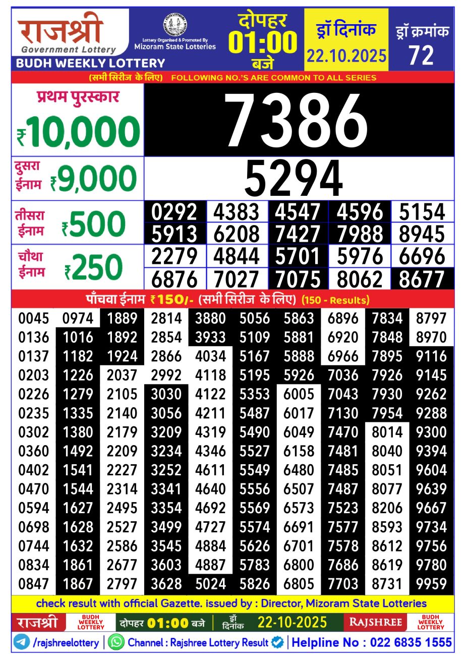 Rajshree Lottery Result 1PM 22.10.25 Share: XFacebookPinterestRedditVKDiggLinkedinMix Related Results Rajshree Lottery Result 1PM 21.10.25 Rajshree Lottery Result 1PM 20.10.25 Rajshree Lottery Result 1PM 19.10.25 Rajshree Lottery Result 1PM 18.10.25