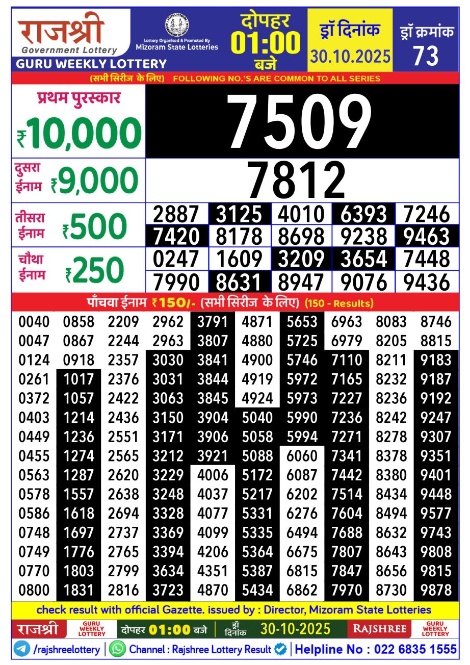 Rajshree Lottery Result 1PM 30.10.25 Share: XFacebookPinterestRedditVKDiggLinkedinMix Related Results Rajshree Lottery Result 1PM 29.10.25 Rajshree Lottery Result 1PM 28.10.25 Rajshree Lottery Result 1PM 27.10.25 Rajshree Lottery Result 1PM 26.10.25
