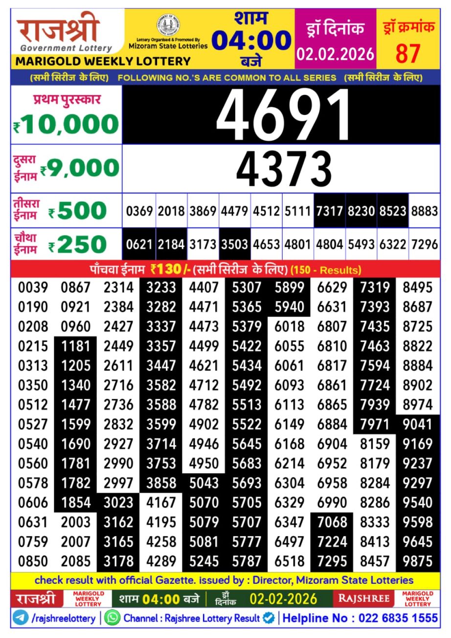 Rajshree Lottery Result 4PM 02.02.26 Share: XFacebookPinterestRedditVKDiggLinkedinMix Related Results Rajshree Lottery Result 4PM 10.02.26 Rajshree Lottery Result 4PM 09.02.26 Rajshree Lottery Result 4PM 08.02.26 Rajshree Lottery Result 4PM 07.02.26