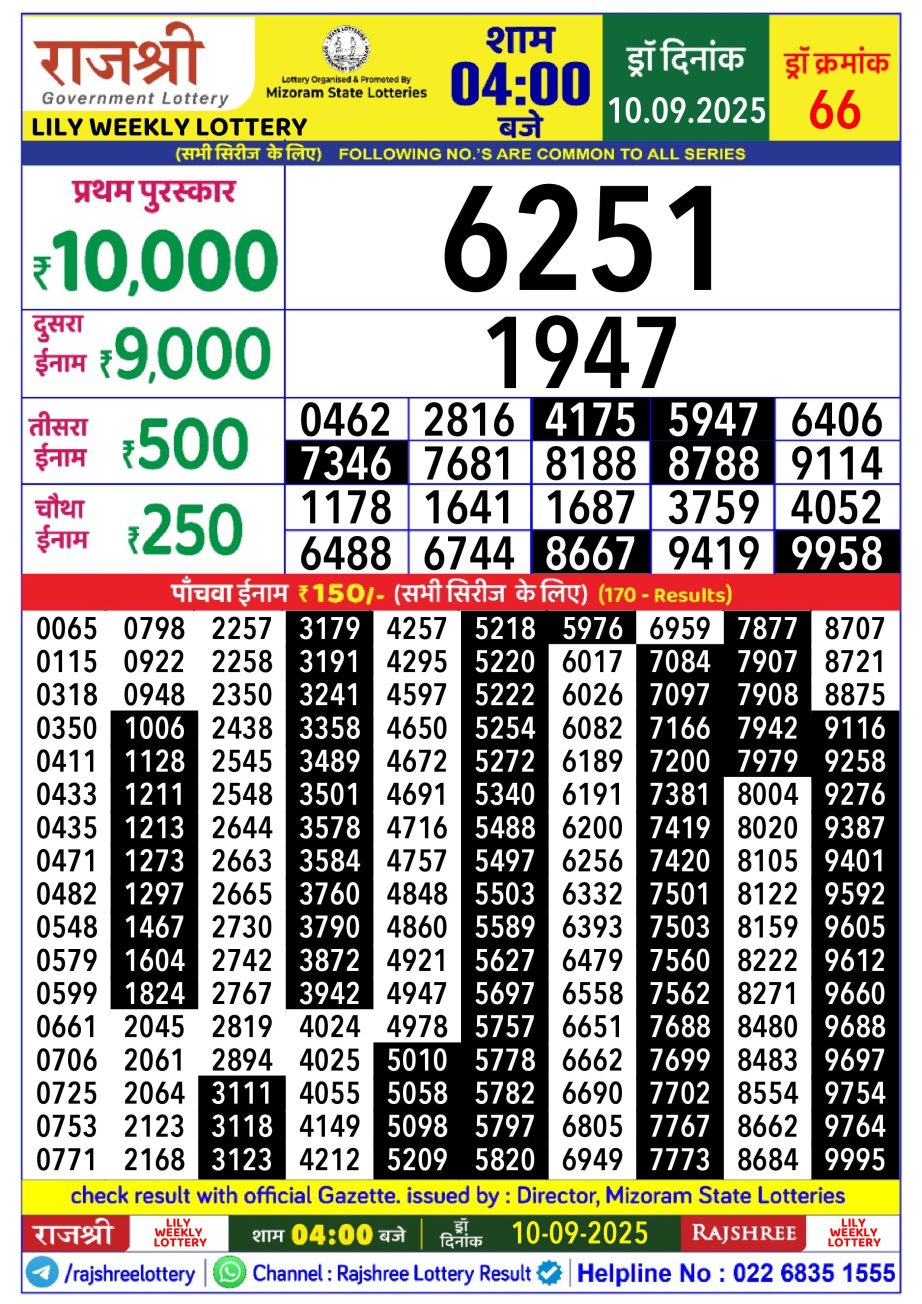 Rajshree Lottery Result 4PM 10.09.25 Share: XFacebookPinterestRedditVKDiggLinkedinMix Related Results Rajshree Lottery Result 4PM 29.10.25 Rajshree Lottery Result 4PM 28.10.25 Rajshree Lottery Result 4PM 27.10.25 Rajshree Lottery Result 4PM 26.10.25