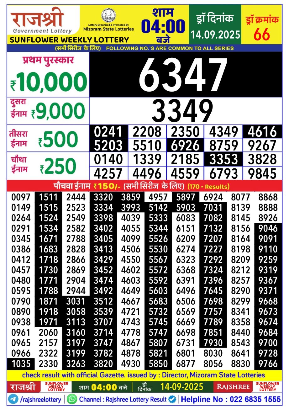 Rajshree Lottery Result 4PM 14.09.25 Share: XFacebookPinterestRedditVKDiggLinkedinMix Related Results Rajshree Lottery Result 4PM 29.10.25 Rajshree Lottery Result 4PM 28.10.25 Rajshree Lottery Result 4PM 27.10.25 Rajshree Lottery Result 4PM 26.10.25