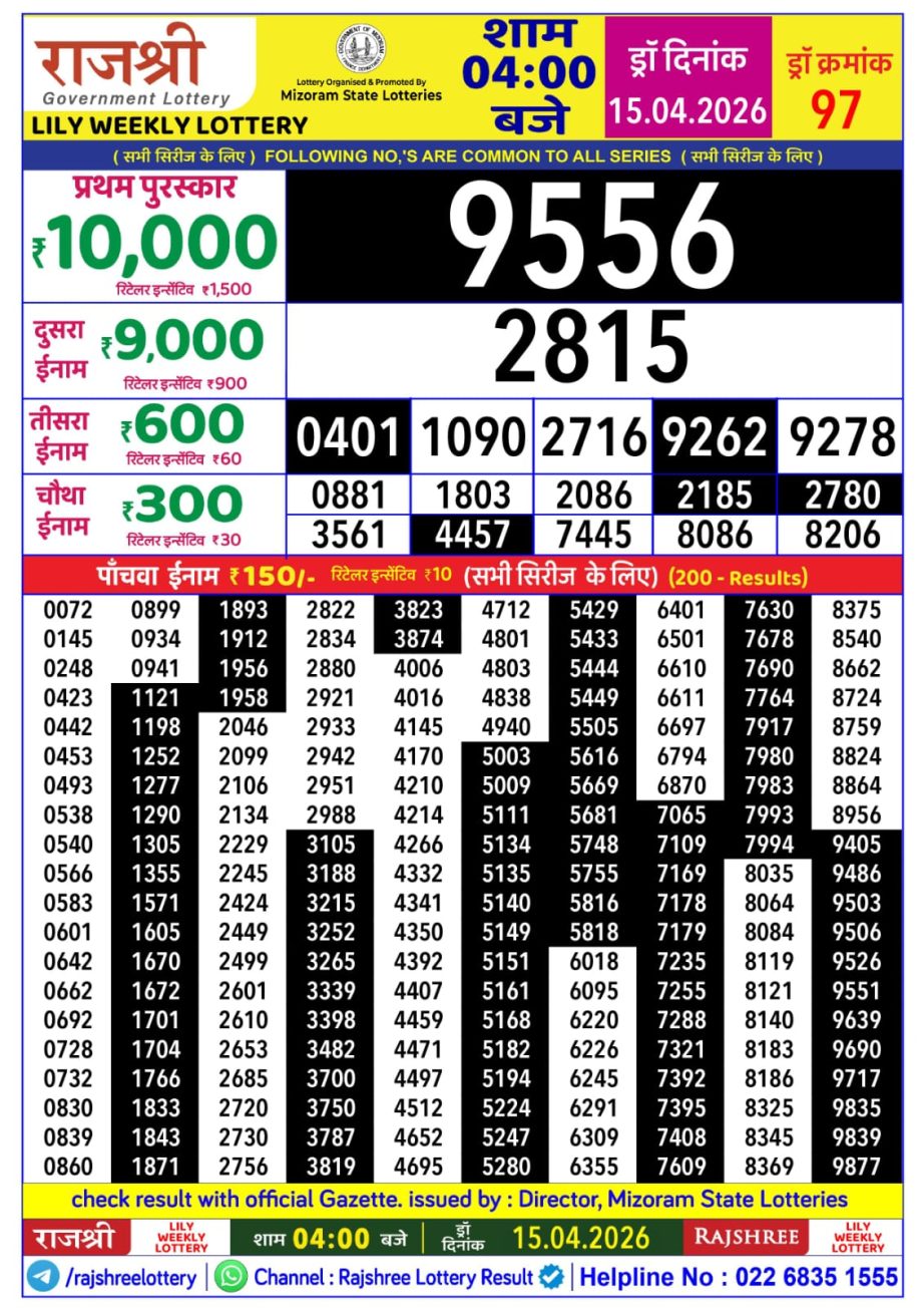 Rajshree Lottery Result 4PM 15.04.26 Share: XFacebookPinterestRedditVKDiggLinkedinMix Related Results Rajshree Lottery Result 4PM 17.04.26 Rajshree Lottery Result 4PM 16.04.26 Rajshree Lottery Result 4PM 14.04.26 Rajshree Lottery Result 4PM 13.04.26