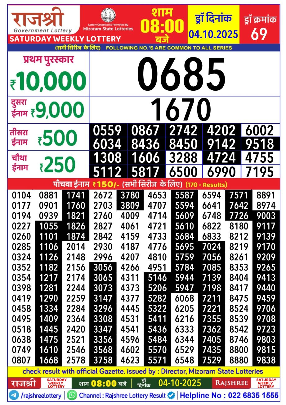 Rajshree Lottery Result 8PM 04.10.25 Share: XFacebookPinterestRedditVKDiggLinkedinMix Related Results Rajshree Lottery Result 8PM 13.10.25 Rajshree Lottery Result 8PM 12.10.25 Rajshree Lottery Result 8PM 11.10.25 Rajshree Lottery Result 8PM 10.10.25