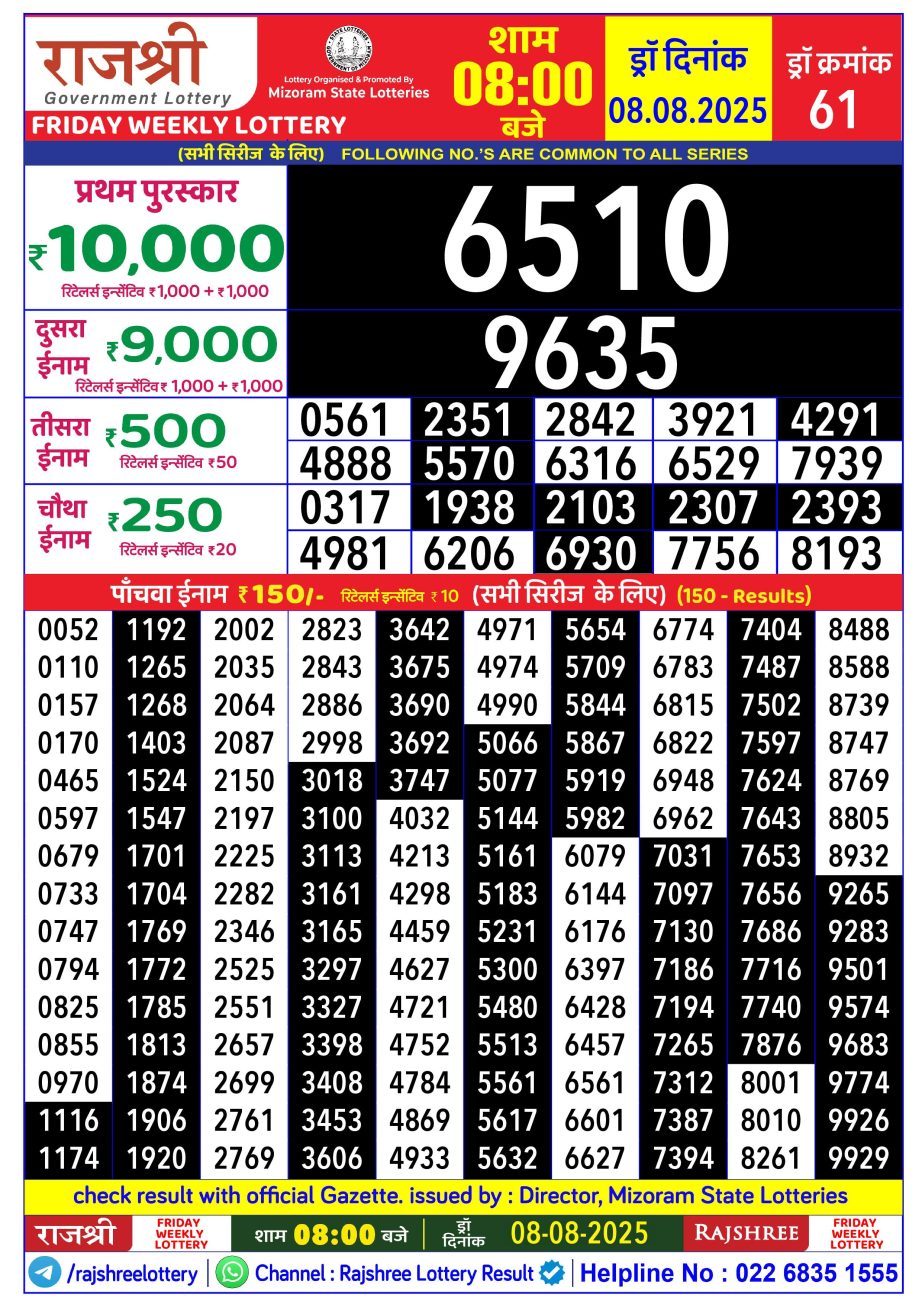 Rajshree Lottery Result 8PM 08.08.25 Share: XFacebookPinterestRedditVKDiggLinkedinMix Related Results Rajshree Lottery Result 8PM 12.11.25 Rajshree Lottery Result 8PM 11.11.25 Rajshree Lottery Result 8PM 10.11.25 Rajshree Lottery Result 8PM 09.11.25