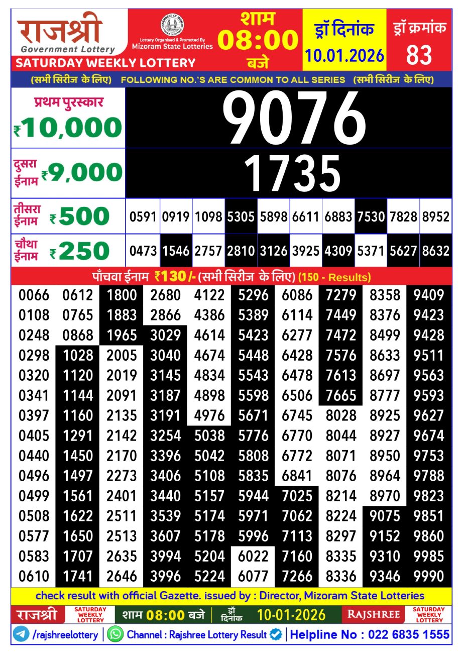 Rajshree Lottery Result 8PM 10.01.26 Share: XFacebookPinterestRedditVKDiggLinkedinMix Related Results Rajshree Lottery Result 8PM 16.01.26 Rajshree Lottery Result 8PM 15.01.26 Rajshree Lottery Result 8PM 14.01.26 Rajshree Lottery Result 8PM 13.01.26