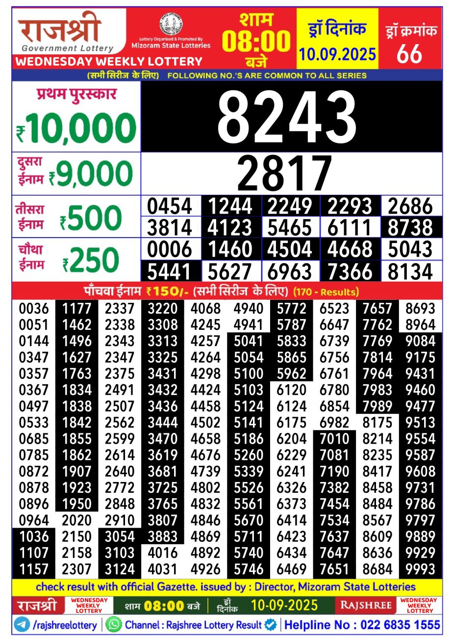Rajshree Lottery Result 8PM 10.09.25 Share: XFacebookPinterestRedditVKDiggLinkedinMix Related Results Rajshree Lottery Result 8PM 29.10.25 Rajshree Lottery Result 8PM 28.10.25 Rajshree Lottery Result 8PM 27.10.25 Rajshree Lottery Result 8PM 26.10.25