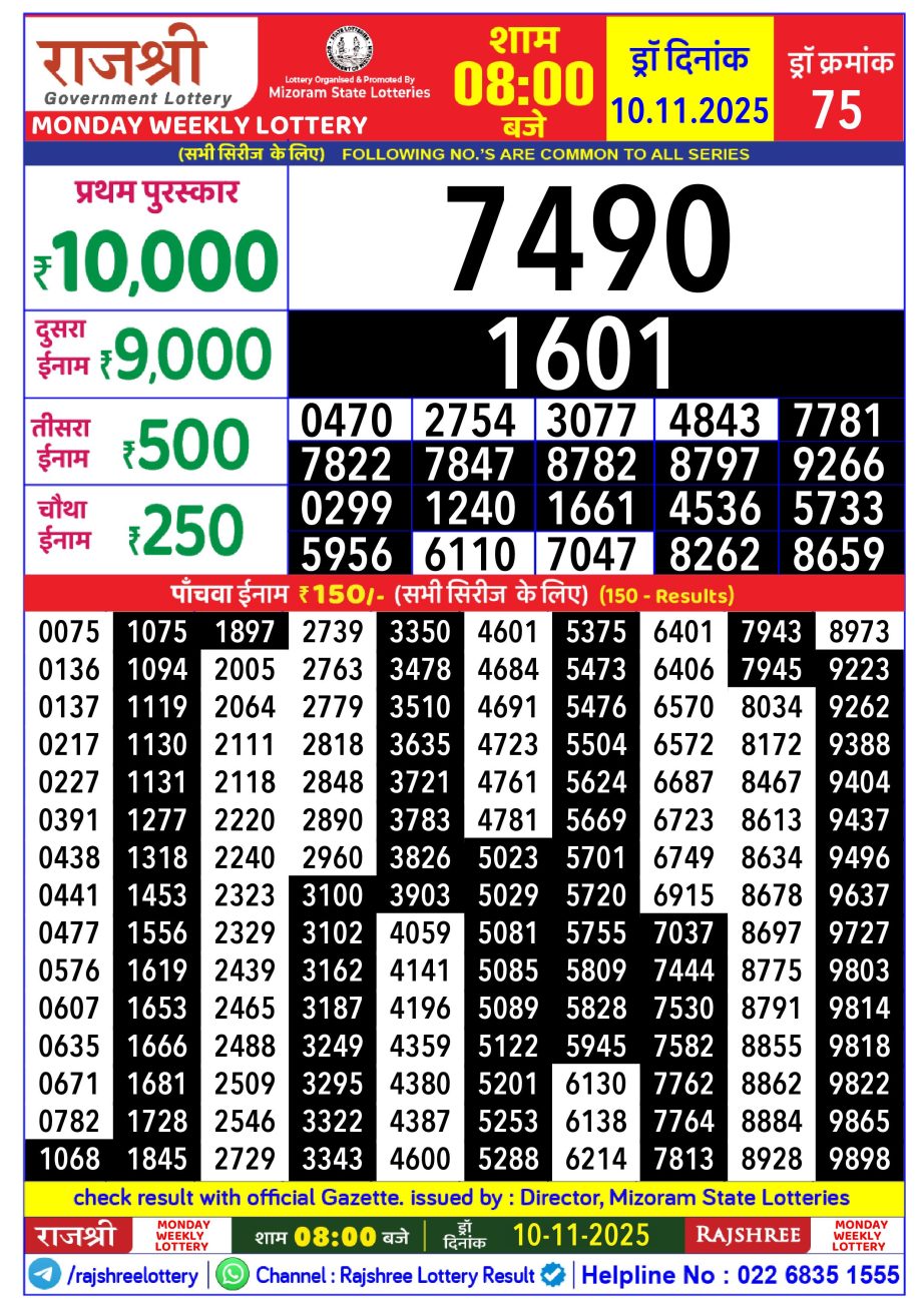 Rajshree Lottery Result 8PM 10.11.25 Share: XFacebookPinterestRedditVKDiggLinkedinMix Related Results Rajshree Lottery Result 8PM 11.11.25 Rajshree Lottery Result 8PM 09.11.25 Rajshree Lottery Result 8PM 08.11.25 Rajshree Lottery Result 8PM 07.11.25